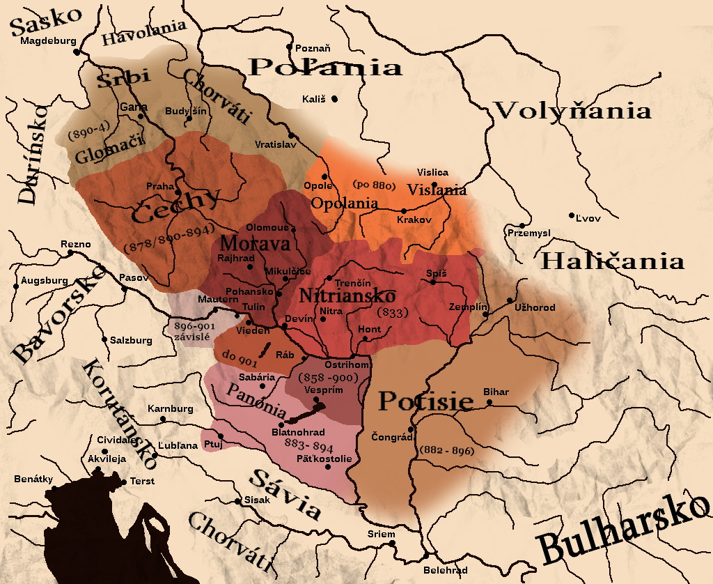 Возможно, короткое время она контролировала также Лузатию, Силезию, Закарпатье и почти всю территорию Венгрии, но это не точно, историки спорят.