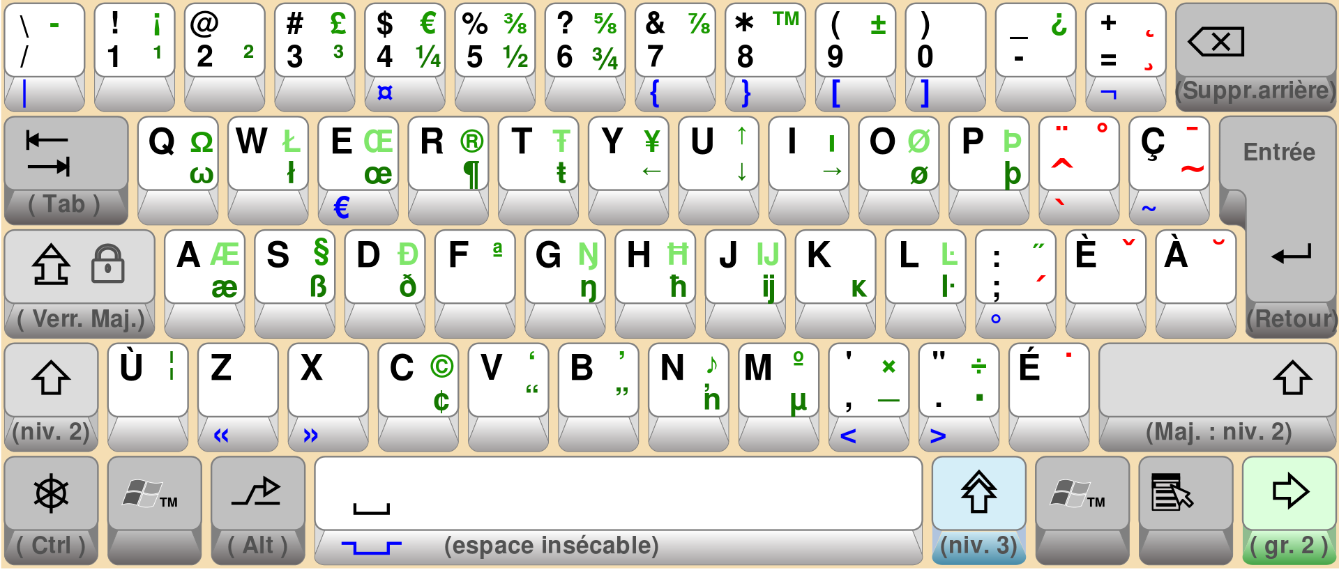 Zato etu raskladku sovsem ne nužno učit i možno stavit ne rädom, a vmesto anglijskoj. Tak čto my možem ispolzovat etu čertu kak zamenu umläutu.
