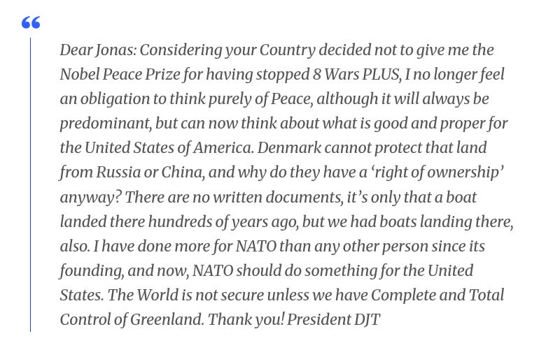 “Мир не будет в безопасности, пока у нас не будет Полного и Тотального Контроля над Гренландией”